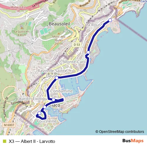 Bus X3 - Albert II - Larvotto: Full Schedule in Monaco