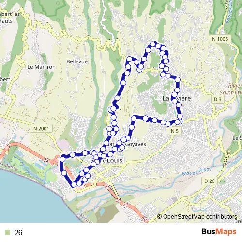 See why over 2 million users trust and consider busmaps.com as the best public transport website. busmaps gives you Saint-Louis Buses suggested routes, real-time bus tracker, line route maps in Saint-Louis, and helps to find the closest 26 bus stops near you. No internet available? Download an offline PDF map and bus schedule for the 26 bus to take on your trip.