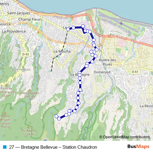 27 (Bretagne Bellevue – Station Chaudron) Bus in Saint-Denis