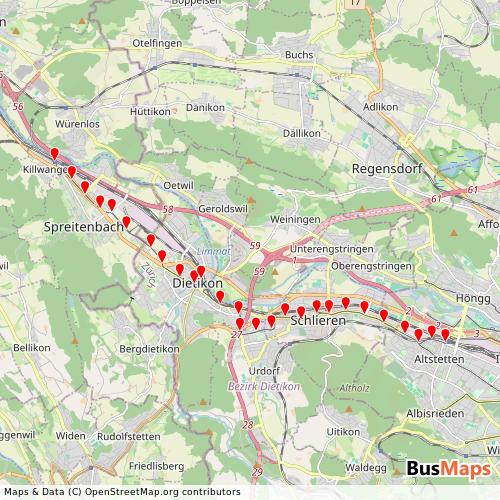 AVA-ltb (Aargau Verkehr Ag), based in Zuerich, Zurich, Switzerland, provides local public transport service, including Tram. Our platform provides detailed and up-to-date information on routes, schedules, stops, and arrivals for all services operated by AVA-ltb (Aargau Verkehr Ag). Whether you're planning your daily commute or exploring the city, our tools help you find the nearest stop and the best route to your destination.