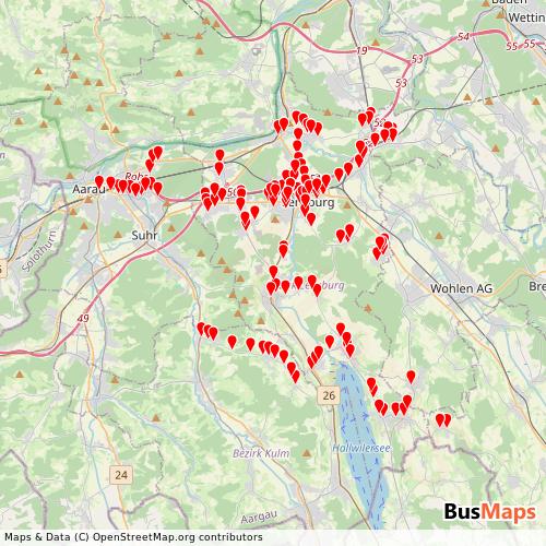 Explore RBL (Regionalbus Lenzburg)'s 22 Routes in Lenzburg