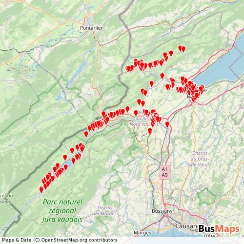 Explore Transports Vallée de Joux-Yverdon-Ste-Croix's 16 Routes in Yverdon-les-Bains