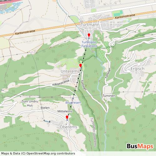 Turtmann-Unterems-Oberems, based in Leuk, Valais, Switzerland, offers a reliable and comprehensive network of public transport services, including Cable car. Our platform provides detailed and up-to-date information on routes, schedules, stops, and arrivals for all services operated by Turtmann-Unterems-Oberems. Whether you're planning your daily commute or exploring the city, our tools help you find the nearest stop and the best route to your destination.