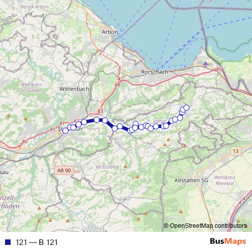 Bus 121 - B 121 in Sankt Gallen: Stops & Timetable