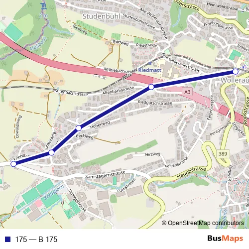 The first stop of the 175 bus route is Wollerau, Dorfplatz and the last stop is Wollerau, Oswäldli. 175 (B 175) is operational during tous les jours.