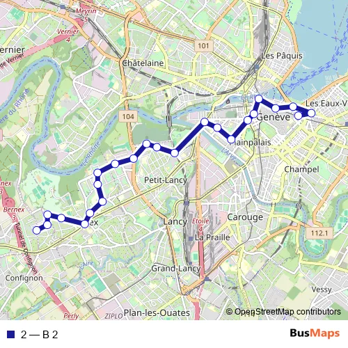 See why over 2 million users trust and consider busmaps.com as the best public transport website. busmaps gives you Geneve Buses suggested routes, real-time bus tracker, line route maps in Geneve, and helps to find the closest 2 bus stops near you. No internet available? Download an offline PDF map and bus schedule for the 2 bus to take on your trip.