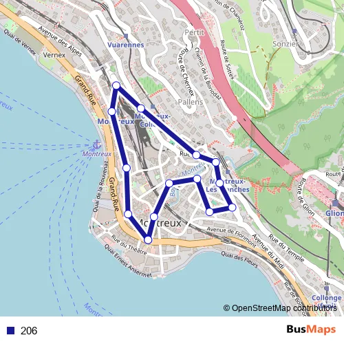 See why over 2 million users trust and consider busmaps.com as the best public transport website. busmaps gives you Montreux Buses suggested routes, real-time bus tracker, line route maps in Montreux, and helps to find the closest 206 bus stops near you. No internet available? Download an offline PDF map and bus schedule for the 206 bus to take on your trip.