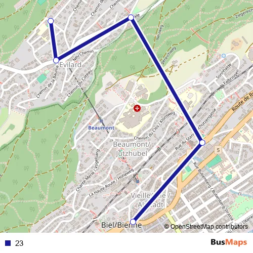 See why over 2 million users trust and consider busmaps.com as the best public transport website. busmaps gives you Biel/Bienne Buses suggested routes, real-time bus tracker, line route maps in Biel/Bienne, and helps to find the closest 23 bus stops near you. No internet available? Download an offline PDF map and bus schedule for the 23 bus to take on your trip.