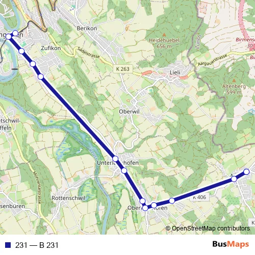 See why over 2 million users trust and consider busmaps.com as the best public transport website. busmaps gives you Oberlunkhofen Buses suggested routes, real-time bus tracker, line route maps in Oberlunkhofen, and helps to find the closest 231 bus stops near you. No internet available? Download an offline PDF map and bus schedule for the 231 bus to take on your trip.