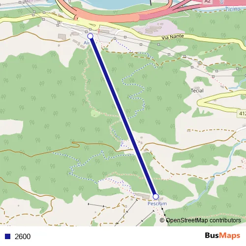 The first stop of the 2600 cable-car route is Pesciüm and the last stop is Airolo (Pesciüm). 2600 is operational during tous les jours.