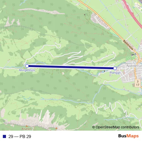 The first stop of the 29 cable-car route is Niederurnen and the last stop is Morgenholz. 29 (PB 29) is operational during en semaine.
