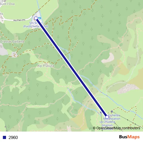 The first stop of the 2960 cable-car route is Furtschellas Mittelstation and the last stop is Sils Maria (Furtschellasbahn). 2960 is operational during tous les jours.