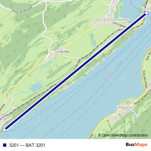 The first stop of the 3201 ferry route is Le Pont (lac) and the last stop is Le Pont (lac). 3201 (BAT 3201) is operational during le week-end.
