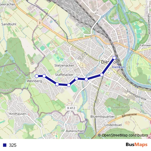 See why over 2 million users trust and consider busmaps.com as the best public transport website. busmaps gives you Dietikon Buses suggested routes, real-time bus tracker, line route maps in Dietikon, and helps to find the closest 325 bus stops near you. No internet available? Download an offline PDF map and bus schedule for the 325 bus to take on your trip.