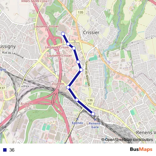 See why over 2 million users trust and consider busmaps.com as the best public transport website. busmaps gives you Renens Buses suggested routes, real-time bus tracker, line route maps in Renens, and helps to find the closest 36 bus stops near you. No internet available? Download an offline PDF map and bus schedule for the 36 bus to take on your trip.