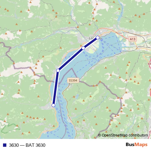 The first stop of the 3630 ferry route is Locarno (lago) and the last stop is Cannobio (lago). 3630 (BAT 3630) is operational during tous les jours.