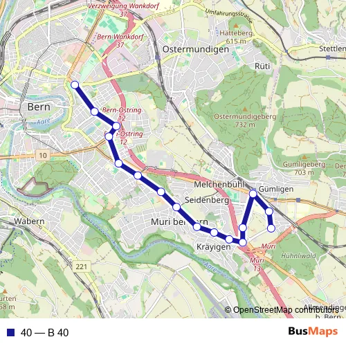 See why over 2 million users trust and consider busmaps.com as the best public transport website. busmaps gives you Bern Buses suggested routes, real-time bus tracker, line route maps in Bern, and helps to find the closest 40 bus stops near you. No internet available? Download an offline PDF map and bus schedule for the 40 bus to take on your trip.