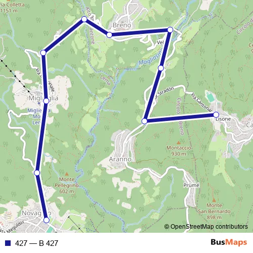 The first stop of the 427 bus route is Cademario, Lisone and the last stop is Novaggio, Posta. 427 (B 427) is operational during tous les jours.