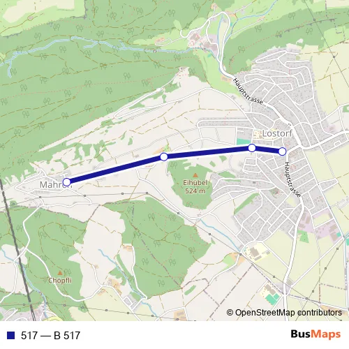 The first stop of the 517 bus route is Lostorf, Mitte and the last stop is Lostorf, Mahren. 517 (B 517) is operational during en semaine.