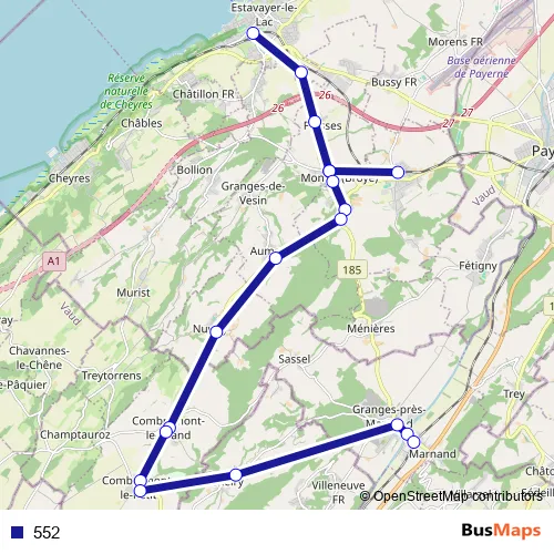 See why over 2 million users trust and consider busmaps.com as the best public transport website. busmaps gives you Payerne Buses suggested routes, real-time bus tracker, line route maps in Payerne, and helps to find the closest 552 bus stops near you. No internet available? Download an offline PDF map and bus schedule for the 552 bus to take on your trip.