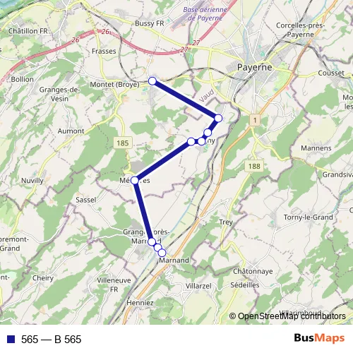 See why over 2 million users trust and consider busmaps.com as the best public transport website. busmaps gives you Payerne Buses suggested routes, real-time bus tracker, line route maps in Payerne, and helps to find the closest 565 bus stops near you. No internet available? Download an offline PDF map and bus schedule for the 565 bus to take on your trip.