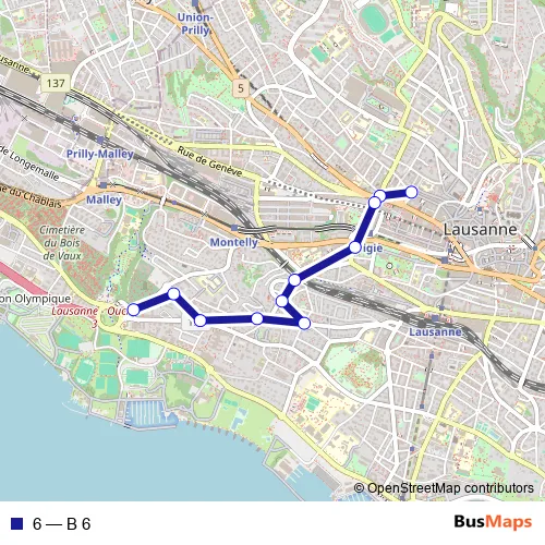 See why over 2 million users trust and consider busmaps.com as the best public transport website. busmaps gives you Lausanne Buses suggested routes, real-time bus tracker, line route maps in Lausanne, and helps to find the closest 6 bus stops near you. No internet available? Download an offline PDF map and bus schedule for the 6 bus to take on your trip.