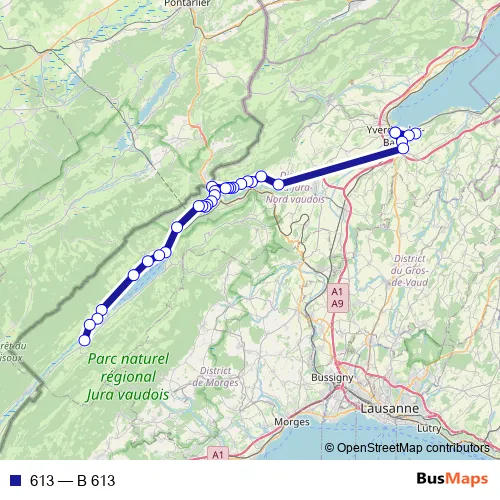 A bus service operated by Travysau (Transports Vallée de Joux-Yverdon-Ste-Croix)
