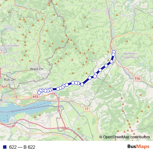 The first stop of the 622 bus route is Wattwil, Bahnhof and the last stop is Eschenbach SG, Dorftreff. 622 (B 622) is operational during tous les jours.