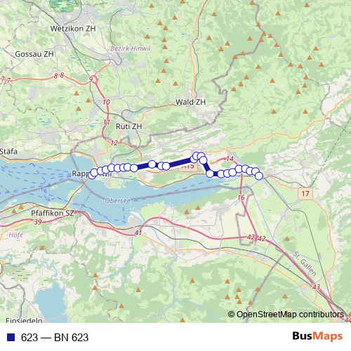 Brer (Busbetrieb Rapperswil-Eschenbach-Rüti Zh) 623 bus Route Map