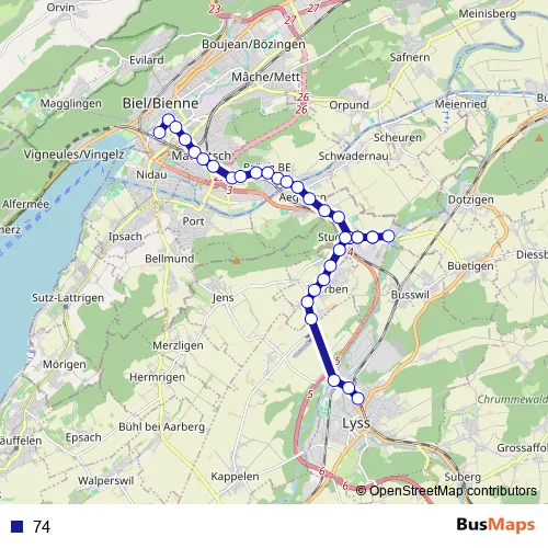 Bus 74 in Biel/Bienne: Stops & Timetable