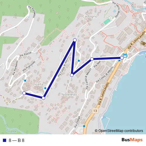 The first stop of the 8 bus route is Brissago, Posta and the last stop is Brissago, Incella. 8 (B 8) is operational during tous les jours.