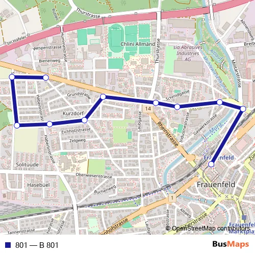 See why over 2 million users trust and consider busmaps.com as the best public transport website. busmaps gives you Frauenfeld Buses suggested routes, real-time bus tracker, line route maps in Frauenfeld, and helps to find the closest 801 bus stops near you. No internet available? Download an offline PDF map and bus schedule for the 801 bus to take on your trip.