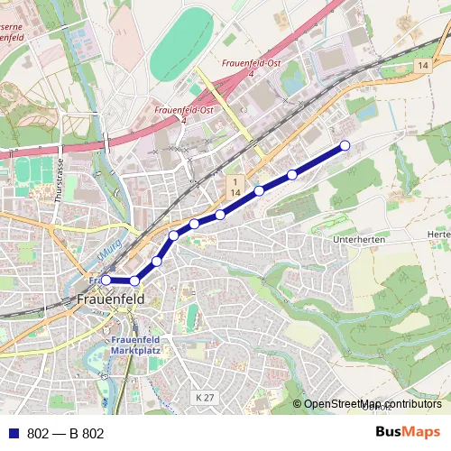 See why over 2 million users trust and consider busmaps.com as the best public transport website. busmaps gives you Frauenfeld Buses suggested routes, real-time bus tracker, line route maps in Frauenfeld, and helps to find the closest 802 bus stops near you. No internet available? Download an offline PDF map and bus schedule for the 802 bus to take on your trip.