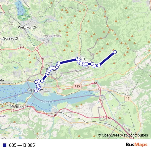 The first stop of the 885 bus route is Rapperswil SG, Bahnhof and the last stop is Atzmännig, Schutt. 885 (B 885) is operational during tous les jours.