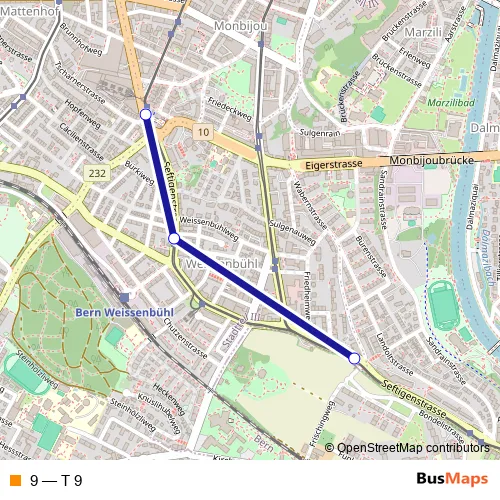 See why over 2 million users trust and consider busmaps.com as the best public transport website. busmaps gives you Bern Trams suggested routes, real-time bus tracker, line route maps in Bern, and helps to find the closest 9 tram stops near you. No internet available? Download an offline PDF map and bus schedule for the 9 tram to take on your trip.
