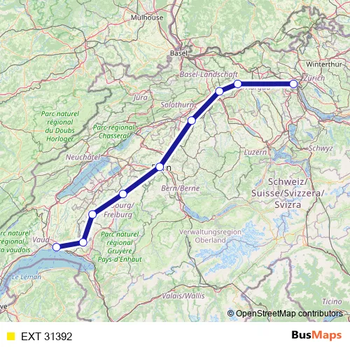 The first stop of the EXT 31392 rail route is Zürich Altstetten and the last stop is Lausanne. EXT 31392 is operational during tous les jours.