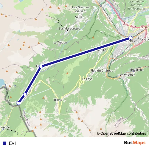 Bus Ev1 in Martigny-Ville: Stops & Timetable