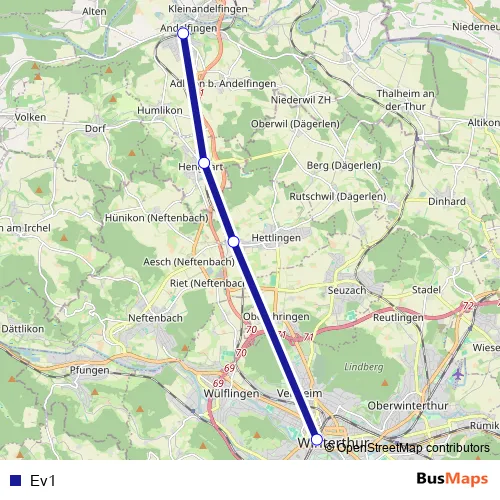 See why over 2 million users trust and consider busmaps.com as the best public transport website. busmaps gives you Winterthur Buses suggested routes, real-time bus tracker, line route maps in Winterthur, and helps to find the closest Ev1 bus stops near you. No internet available? Download an offline PDF map and bus schedule for the Ev1 bus to take on your trip.