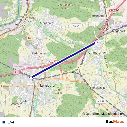 See why over 2 million users trust and consider busmaps.com as the best public transport website. busmaps gives you Lenzburg Buses suggested routes, real-time bus tracker, line route maps in Lenzburg, and helps to find the closest Ev4 bus stops near you. No internet available? Download an offline PDF map and bus schedule for the Ev4 bus to take on your trip.