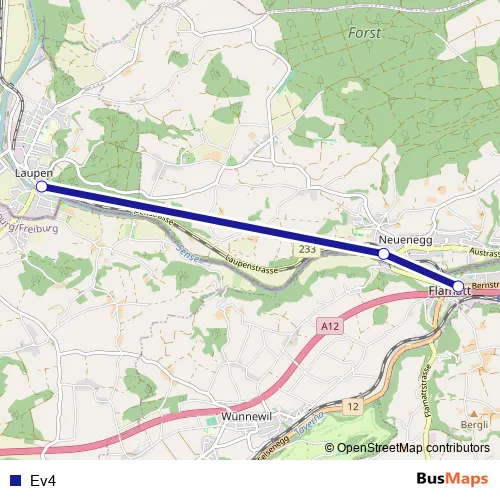 See why over 2 million users trust and consider busmaps.com as the best public transport website. busmaps gives you Bern Buses suggested routes, real-time bus tracker, line route maps in Bern, and helps to find the closest Ev4 bus stops near you. No internet available? Download an offline PDF map and bus schedule for the Ev4 bus to take on your trip.