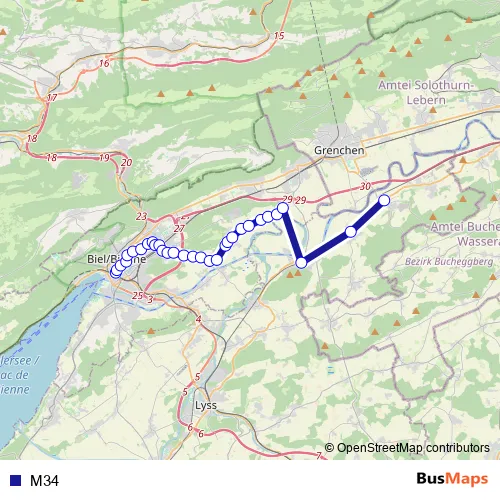 See why over 2 million users trust and consider busmaps.com as the best public transport website. busmaps gives you Biel/Bienne Buses suggested routes, real-time bus tracker, line route maps in Biel/Bienne, and helps to find the closest M34 bus stops near you. No internet available? Download an offline PDF map and bus schedule for the M34 bus to take on your trip.