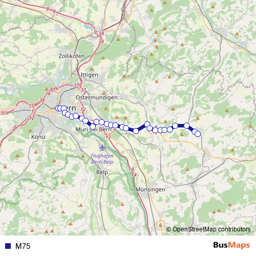 See why over 2 million users trust and consider busmaps.com as the best public transport website. busmaps gives you Bern Buses suggested routes, real-time bus tracker, line route maps in Bern, and helps to find the closest M75 bus stops near you. No internet available? Download an offline PDF map and bus schedule for the M75 bus to take on your trip.