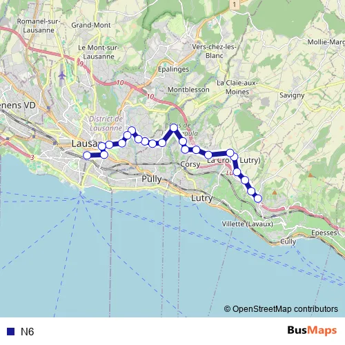 See why over 2 million users trust and consider busmaps.com as the best public transport website. busmaps gives you Lausanne Buses suggested routes, real-time bus tracker, line route maps in Lausanne, and helps to find the closest N6 bus stops near you. No internet available? Download an offline PDF map and bus schedule for the N6 bus to take on your trip.