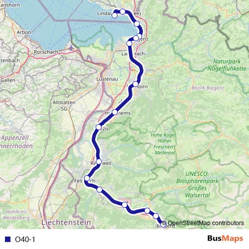 Bahnhofplatz - Lindauer Straße - Hafen Bregenz - Strabonstraße - Busbahnhof - Unter der Bahn - Kreuzlinger Straße - Wohlwendstraße - Bahnweg - Bahnhofstraße - Tschippweg - Bahnhofplatz