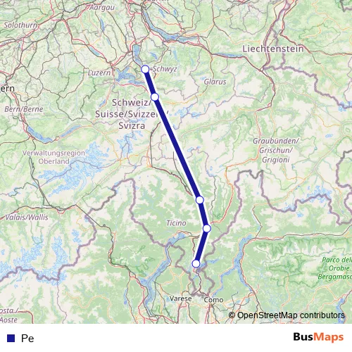 The first stop of the Pe rail route is Arth-Goldau and the last stop is Lugano. Pe is operational during tous les jours.