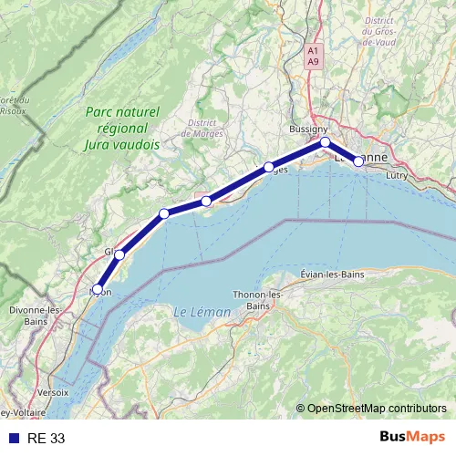 See why over 2 million users trust and consider busmaps.com as the best public transport website. busmaps gives you Lausanne Rail Services suggested routes, real-time bus tracker, line route maps in Lausanne, and helps to find the closest RE 33 rail stops near you. No internet available? Download an offline PDF map and bus schedule for the RE 33 rail to take on your trip.