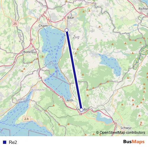 See why over 2 million users trust and consider busmaps.com as the best public transport website. busmaps gives you Zug Rail Services suggested routes, real-time bus tracker, line route maps in Zug, and helps to find the closest Re2 rail stops near you. No internet available? Download an offline PDF map and bus schedule for the Re2 rail to take on your trip.
