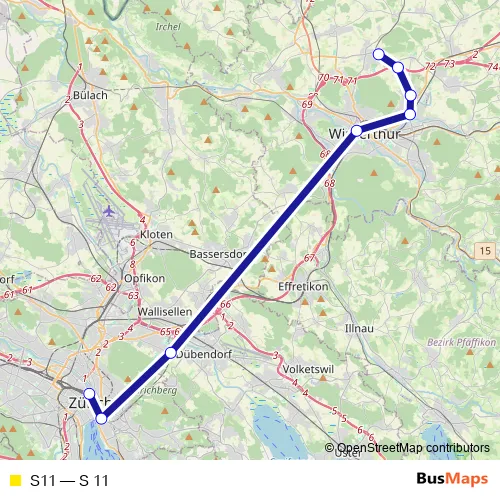 See why over 2 million users trust and consider busmaps.com as the best public transport website. busmaps gives you Winterthur Rail Services suggested routes, real-time bus tracker, line route maps in Winterthur, and helps to find the closest S11 rail stops near you. No internet available? Download an offline PDF map and bus schedule for the S11 rail to take on your trip.