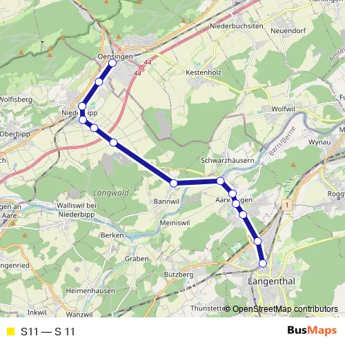The first stop of the S11 rail route is Oensingen and the last stop is Langenthal. S11 (S 11) is operational during tous les jours.