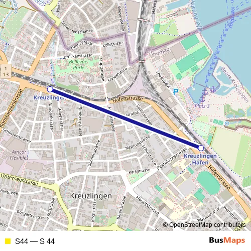 The first stop of the S44 rail route is Kreuzlingen and the last stop is Kreuzlingen Hafen. S44 (S 44) is operational during tous les jours.